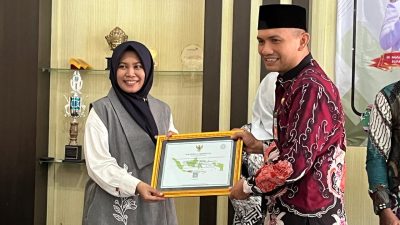 Kepala Disperpusip Abdul Ghafur menyerahkan akreditasi perpustakaan desa.