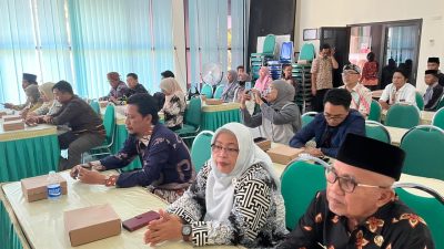 Para pustakawan menghadiri pengumuman pemenang lomba perpustakaan desa/kelurahan tahun 2025.